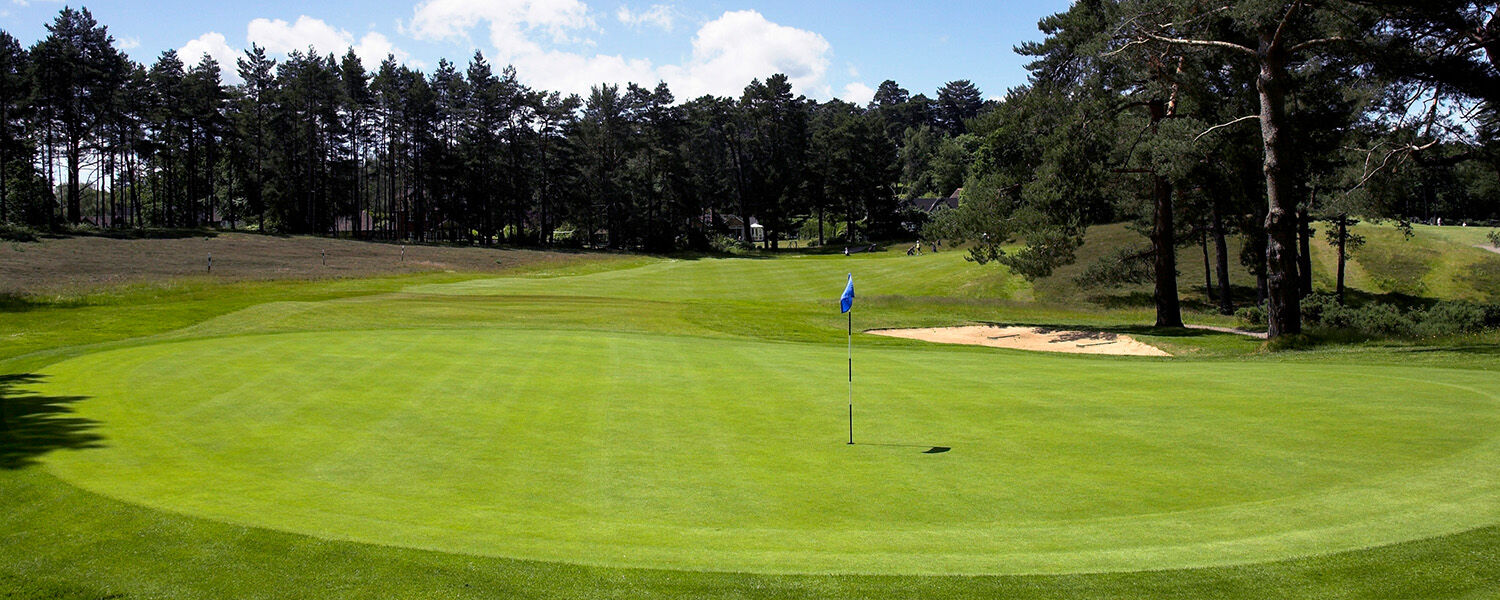 Bypassing Guildford leave the A3 at the A31 Farnham Junction. Follow the A31 for 6 miles (approx) taking the 2nd junction signposted Seale, Tongham and Runfold. At the T-junction turn left to Seale, after half a mile turn right into Seale Lane. Follow the road for 1 mile taking the 2nd left into Blighton Lane. This will bring you to Farnham Golf Club with the visitors' car park immediately to your left at the T-junction.